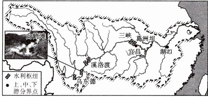 2023年杭州亚运会举办期间,白鹤滩水电站累计向浙江输送电能达22.3亿度,相当于减排二氧化碳184万吨,助力打造首届碳中和亚运会。下图为长江水系主要水电站分布图,据此完成6~8题。
