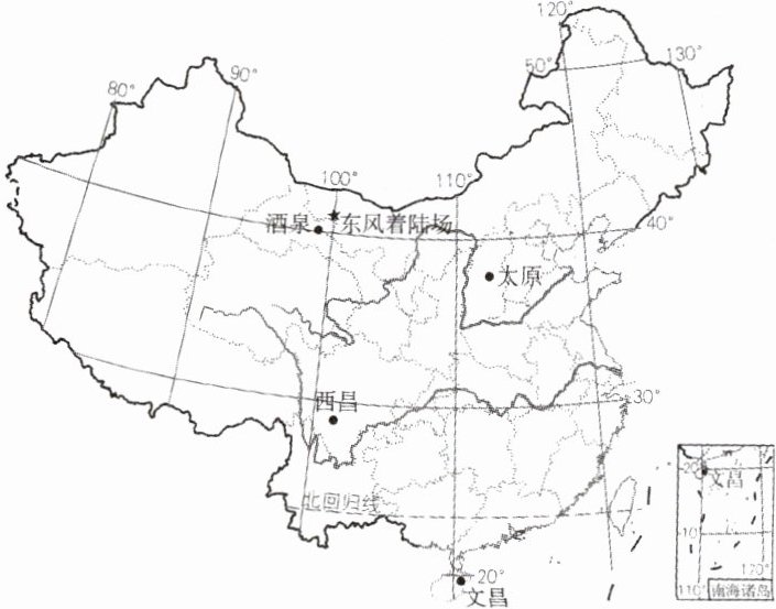 (航空工程)2024 年 11 月 4 日,神舟十八号载人飞船返回舱在东风着陆场成功着陆。下图示意我国四大卫星发射中心及东风着陆场位置。读图,完成 10~11 题。