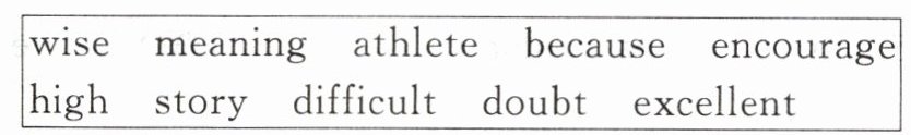 21. athlete 22. height 23. excellent 24. wise 25. because 26. doubt 27. encouraged 28. stories 29. meaning 30. difficult