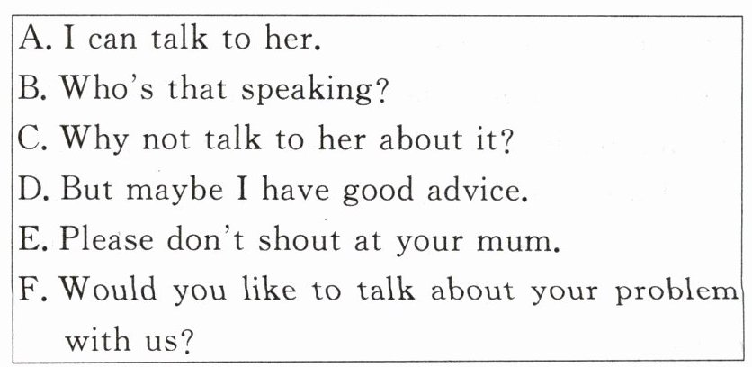 We are listening.B: Sure. I have problems with my mum. Every time we talk about something, we argue a lot. Sometimes we shout at each other.