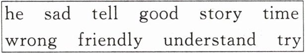 16. sad 17. story 18. tried 19. him 20. good 21. time 22. friendly 23. understand 24. wrong 25. telling