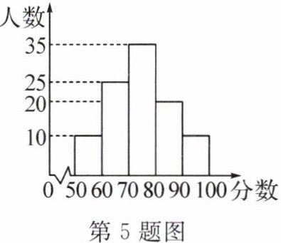 5. 某校为了宣传青少年身心健康的重要性,号召七、八、九年级的 100 名同学进行了跑步测试,按照最终测试成绩的分数进行分组,得到如图所示的直方图.估计这 100 名同学测试成绩的上四分位数可能是(