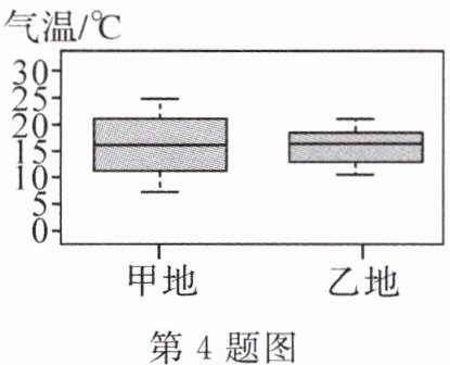 4. 如图,这是甲、乙两地在某一个月中日平均气温的箱线图,从中可以发现这个月的日平均气温值方差较大的是