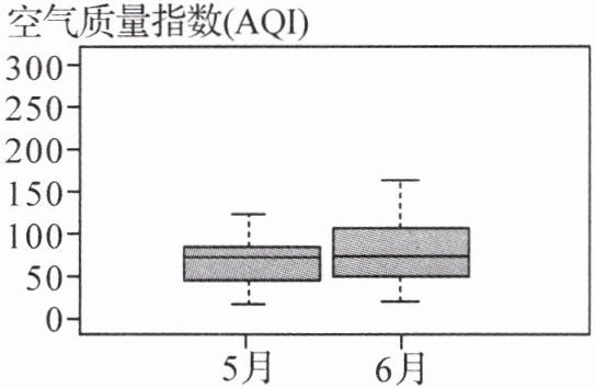 3. 下图为某地区 2023 年 5 月和 6 月的空气质量指数(AQI)箱线图,AQI 值越小,空气质量越好;AQI 值超过 200,说明污染严重,则下列说法正确的是(