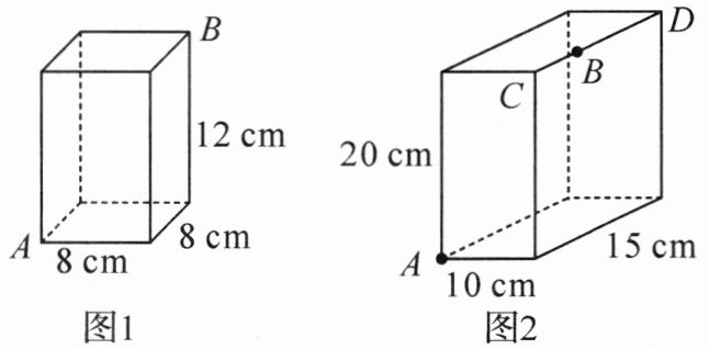 (2)如图2,长方体的长为15cm,宽为10cm,高为20cm,点$B$在棱$CD$上,$CB = 5$cm,一只蚂蚁要沿长方体的表面从点$A$爬到点$B$,需要爬行的最短路程是多少?