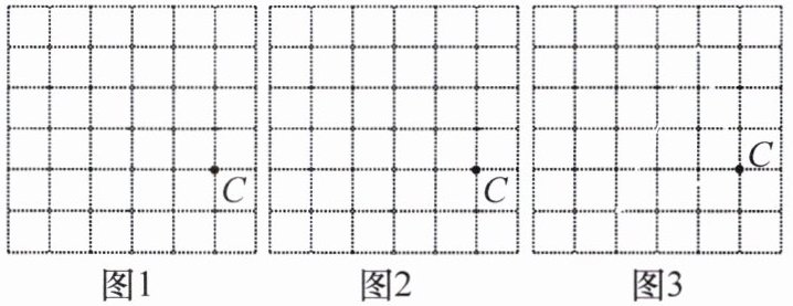 18. 如图,在正方形网格中,每个小正方形的边长均为1。已知点C,请按要求设计$\triangle ABC,$使$\angle ACB = 90°,$AC = BC。