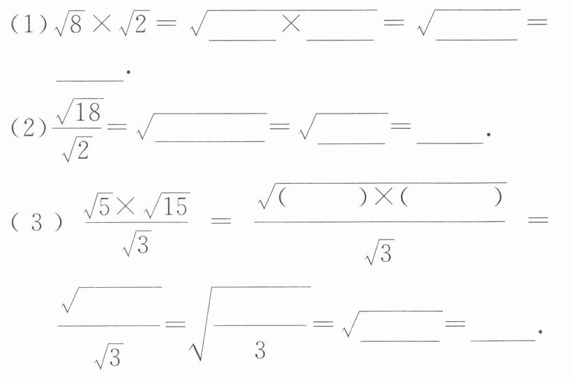 $(1)8 2 16 4 (2)\frac{18}{2} 9 3 (3)5 15 75 75 25 5 5 \sqrt{6}$
