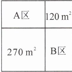 14. 湖南师大附中校本经典题某小区内有一块正方形空地,物业计划利用这块空地修建居民休闲区. 具体规划如图所示,其中 A 区和 B 区为活动区域,剩余两个正方形区域为绿化区域,面积分别是$270 m^2$和$120 m^2$,则 A 区和 B 区的总面积为