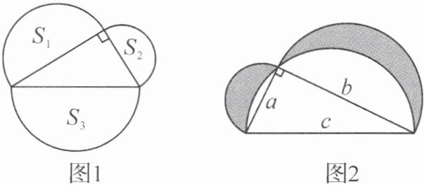 (2)应用:如图2,直角三角形的两条直角边长分别为a,b,斜边长为c,分别以三边为直径作半圆.若a=3,c=5,求图中阴影部分的面积.