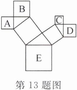 13. 如图所示的是一株美丽的勾股树,其中所有的四边形都是正方形,所有的三角形都是直角三角形.若正方形A,B,C,D的面积分别是4,6,2,4,则最大正方形E的面积是(