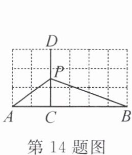 14. 如图,在边长为1的小正方形网格中,P为CD上任意一点,则$PB^{2}-PA^{2}$的值为