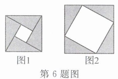 6. 图1是北京国际数学家大会的会标,它取材于我国古代数学家赵爽的“弦图”,由四个全等的直角三角形拼成。若图1中大正方形的面积为24,小正方形的面积为4,现将这四个直角三角形拼成图2,则图2中大正方形的面积为(