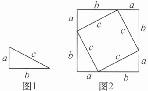 1. 用4个如图1所示的形状、大小完全一样的直角三角形拼一拼、摆一摆,可以摆成如图2所示的正方形,下面我们利用这个图形验证勾股定理。