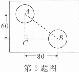 3. 一个外轮廓为长方形的机器零件平面示意图如图所示,根据图中标出的尺寸(单位:mm),可得出两圆孔中心A,B之间的距离为