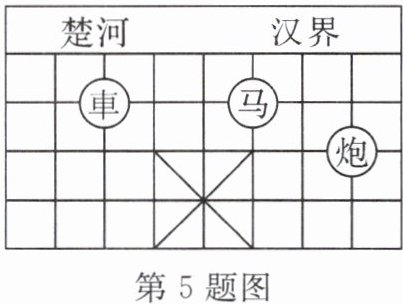 5. 如图,若在象棋盘上建立平面直角坐标系,使棋子“車”的坐标为 $ (-2,2) $,“马”的坐标为 $ (1,2) $,则棋子“炮”的坐标为(