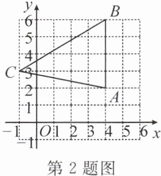 2. 如图,$\triangle ABC$ 三个顶点的坐标分别为 $A(4,2)$,$B(4,6)$,$C(-1,3)$,则 $\triangle ABC$ 的面积为___.