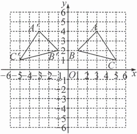 (1)△ABC与△A′B′C′关于y轴对称.A(3,4),A′(-3,4),B(1,2),B′(-1,2),C(5,1),C′(-5,1),对应顶点的纵坐标相同,横坐标互为相反数.