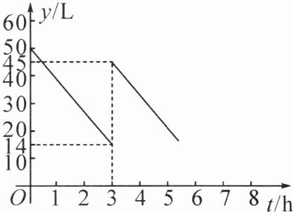 L。(2)写出加油前油箱剩余油量y与行驶时间t之间的关系式y = kt + b,其中k和b的实际意义分别是什么?
