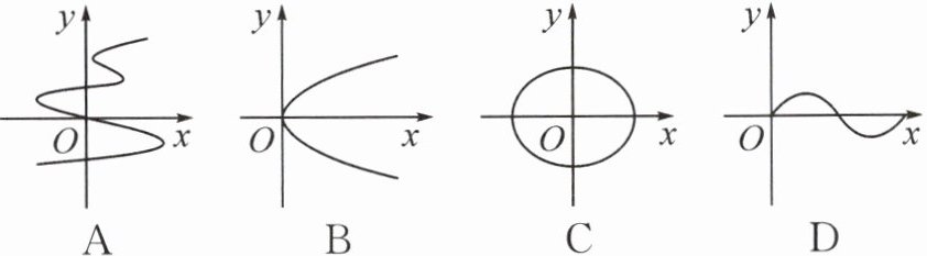 2. 下列曲线中,表示 $ y $ 是 $ x $ 的函数的是(