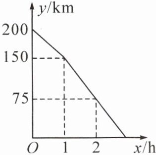 3. (2023·贵州)今年“五一”假期,小星一家驾车前往黄果树旅游,在行驶过程中,汽车离黄果树景点的路程 $ y(km) $ 与所用时间 $ x(h) $ 之间的函数关系的图象如图所示,下列说法正确的是(