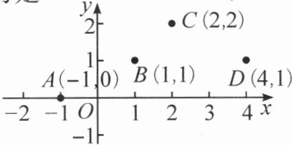 6. (2024·贵阳十九中期中)如图,在平面直角坐标系中有 $ A $,$ B $,$ C $,$ D $ 四个点,则在一次函数 $ y = x + 1 $ 的图象上的是(