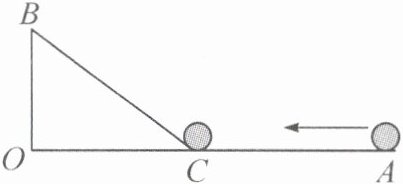 8. 如图,$\angle AOB = 90°$,$OA = 18\mathrm{dm}$,$OB = 6\mathrm{dm}$,一机器人在点 B 处看见一个小球从点 A 出发沿着 AO 方向匀速滚向点 O,机器人立即从点 B 出发,沿直线匀速前进拦截小球,恰好在点 C 处截住了小球.如果小球滚动的速度与机器人行走的速度相等,那么机器人行走的路程 BC 是多少?
