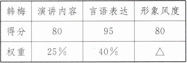 5. 下表是韩梅参加演讲比赛的得分表(单位:分),表格中“△”部分被污损,她的总得分是(