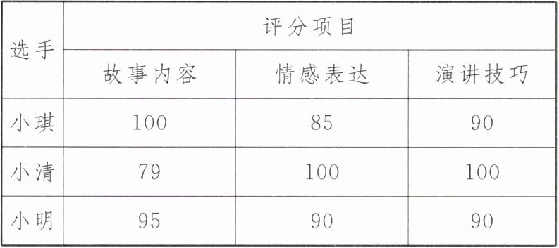 4. 某校举办“身边的温暖故事”主题演讲比赛,其中前三名选手的成绩(单位:分)统计如下表所示。