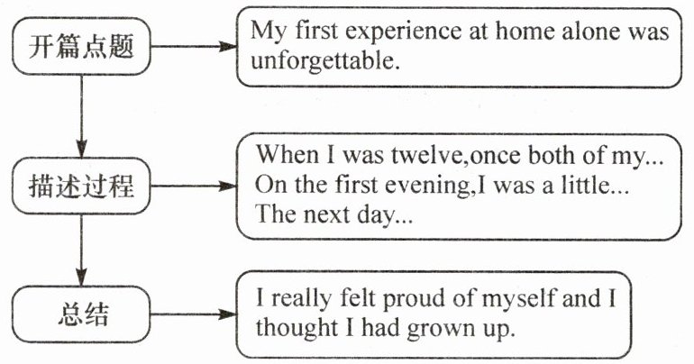 当你12岁时,你的父母出差了两天,那是你第一次独自一人在家。请根据以下提示,用英语写一篇80词左右的短文,介绍自己第一次独自在家的难忘经历。内容包括: