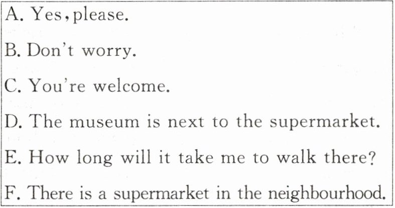根据对话内容,从下面方框中选出恰当的句子补全对话,有一个选项是多余的。