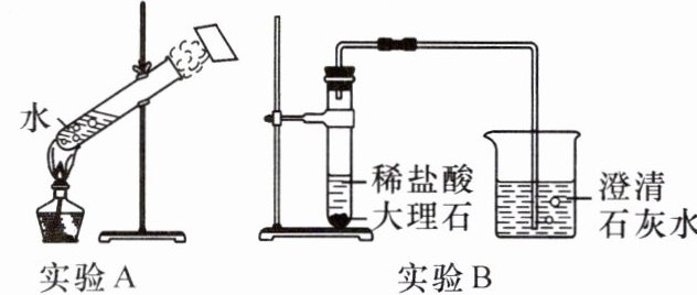 (2)实验B中,将一块大理石用锤子砸成小块,放入试管中,再加入适量稀盐酸,观察到大理石表面有气泡冒出,并逐渐减少,烧杯中澄清石灰水变浑浊。上述实验过程中,发生物理变化的是