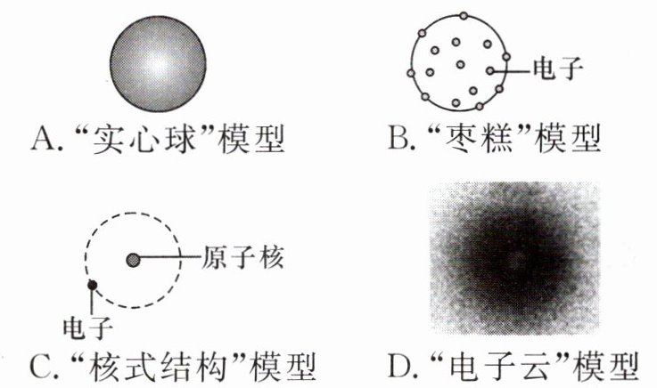 2. [化学史]下列原子模型中是卢瑟福通过$\alpha$粒子散射实验提出的是(