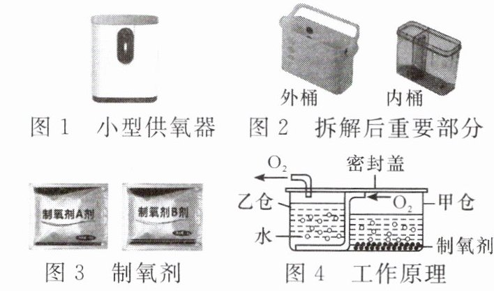 市面上某常见的小型供氧器如图1,拆解后重要部分如图2,制氧剂如图3,工作原理如图4。