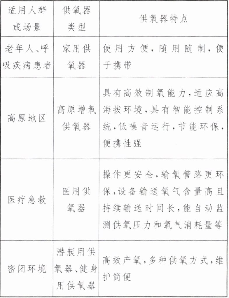 1. 讨论哪些人群在哪些场景或地域会用到供氧器,相应的供氧器应具有怎样的特点。