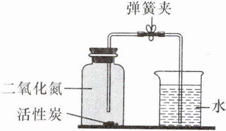 变化。同学进行如图分组实验,在红棕色二氧化氮气体中加入干燥的活性炭,发现瓶内气体颜色变淡或消失,打开弹簧夹,你将看到的现象是水进入集气瓶
