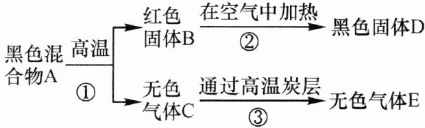 $11.(1)Cu CO_{2} CuO CO (2)①C+2CuO\stackrel{高温}{=}2Cu+CO_{2}\uparrow ②2Cu+O_{2}\stackrel{\triangle}{=}2CuO ③C+CO_{2}\stackrel{高温}{=}2CO$