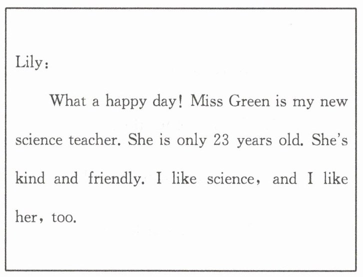 )4. Lily doesn’t like science.任务二:根据表格信息,写出符合迈克(Mike)性格特点的单词。
