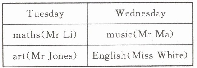 1. Hi;2. maths;3. art;4. Mr;Li;5. don't;6. music;7. English;8. he