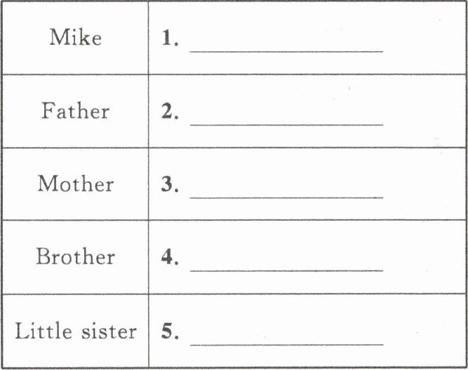 八、阅读短文,把Mike家里每个人的周末活动写出来。