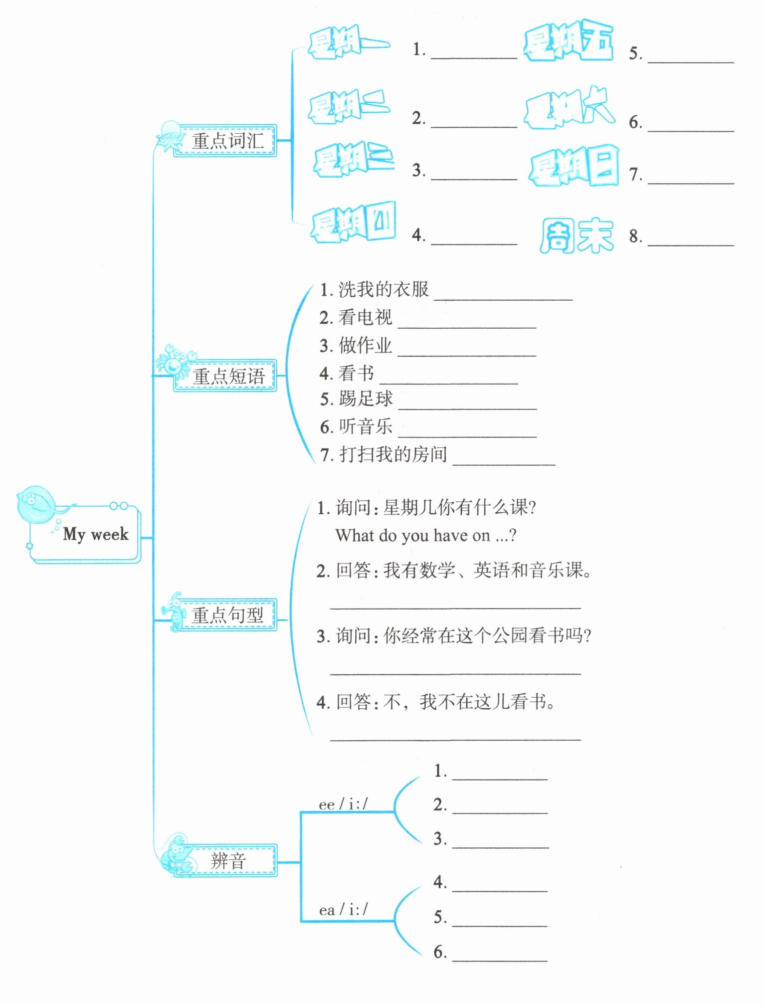 重点短语:1.wash my clothes 2.watch TV 3.do homework 4.read books 5.play football 6.listen to music 7.clean my room