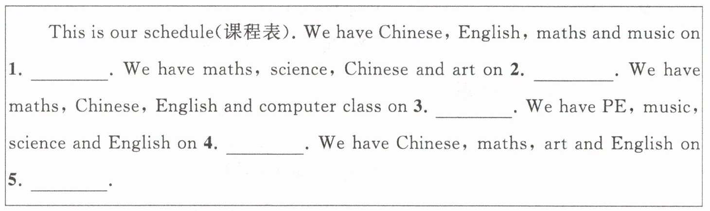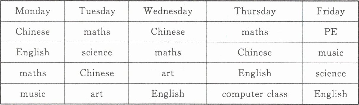 二、下面是李莉所在的班级上午的课程表,大家一起看看他们都上什么课吧!
