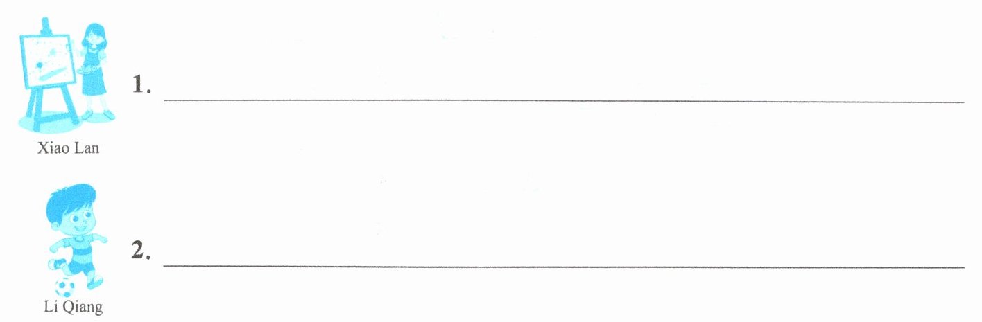 1. Xiao Lan draws pictures on the weekend. 2. Li Qiang plays football on the weekend.