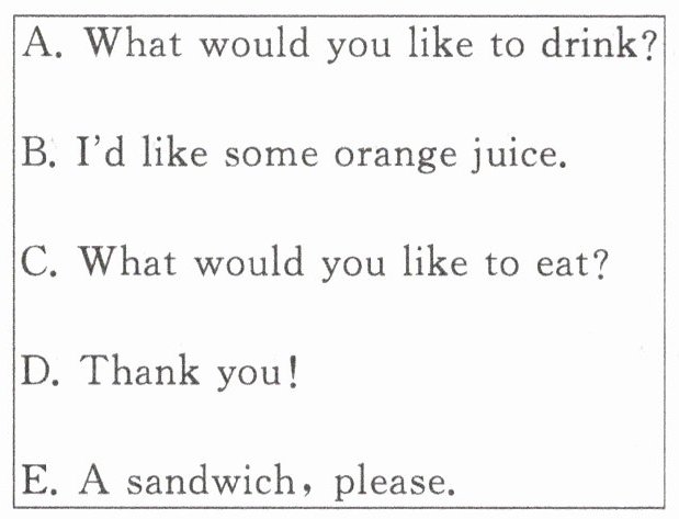 )1. —What would you like to drink? —I'd like some orange juice.(