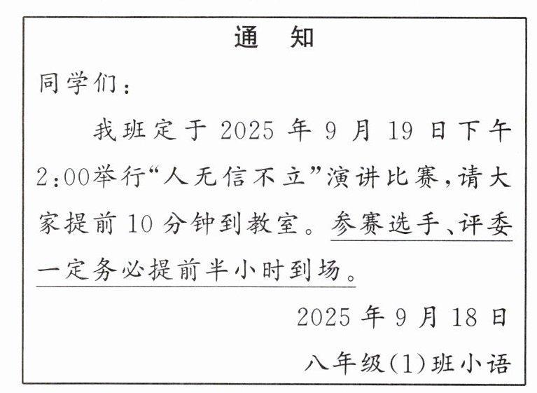 8. 八年级(1)班准备举行以“人无信不立”为主题的演讲比赛,请你参与。