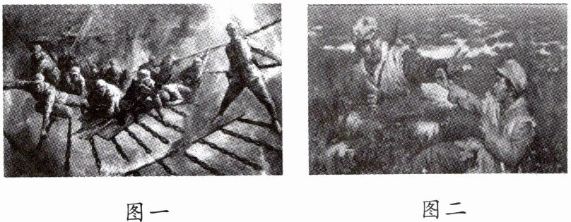 (1)【示例一】图一 飞夺泸定桥 这次战役体现了红军为了革命事业勇于牺牲的大无畏精神,令人敬仰。 【示例二】图二 过草地 在极端恶劣的环境中,红军将士怀着共同的革命理想,保持着严明的纪律和乐观的革命精神,以巨大的精神力量战胜了自然界的困难。这种精神值得我们学习。