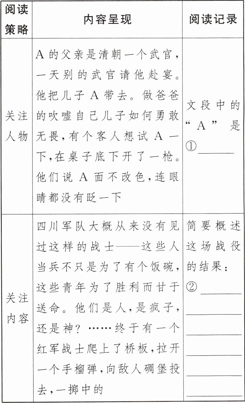 1. 班级开展名著《红星照耀中国》阅读活动,请你填写阅读记录卡。
