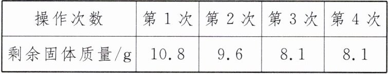 12. 小滨同学为了测定某珍珠粉中碳酸钙的质量分数,称取12.5 g珍珠粉样品,进行四次高温煅烧、冷却、称量剩余固体质量的重复操作(杂质不参加反应),记录数据如下: