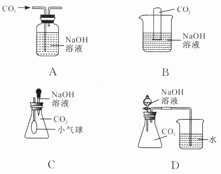 12. [创新实验]下列验证“CO₂ 与 NaOH 溶液反应”的装置中,不能观察到明显现象的是(装置气密性均良好)(