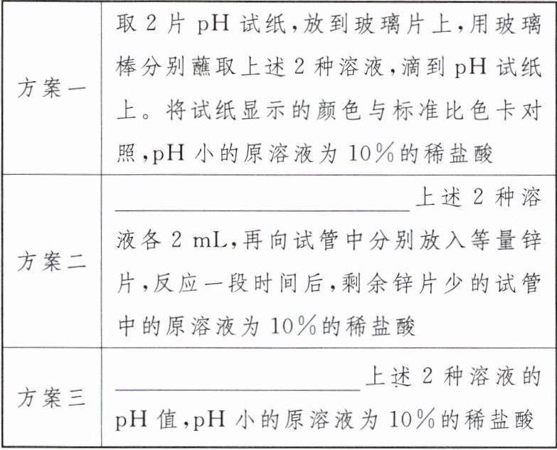 实验室里有两瓶失去标签的溶质质量分数分别为 5%和 10%的稀盐酸。请设计并实施两种以上实验方案,将这两瓶稀盐酸进行区分,并为其贴上标签。