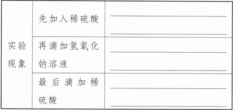 (2)另取一支试管,加入少量氧化铜粉末和 1~2 mL 稀硫酸,观察现象。待氧化铜粉末完全反应后再向试管中滴加适量氢氧化钠溶液,观察现象;最后向其中滴加适量稀硫酸,观察现象。